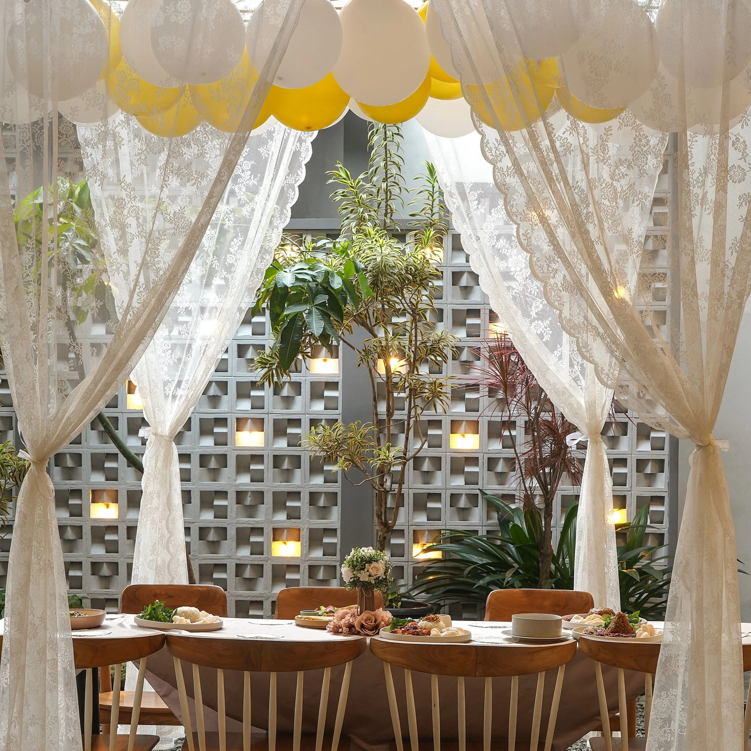Memiliki area semi-outdoor yang cocok untuk berbagai acara resmi maupun casual seperti acara ulang tahun, meeting, ataupun acara keluarga